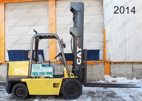 Дизельный автопогрузчик Caterpillar Б/У с интентарным номером 2014 1998 года выпуска. Состояние - удовлетв.. Имеет грузоподъемность 7000 кг. Гарантия: 2 мес или 300 м/час.