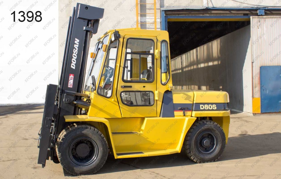 Дизельный автопогрузчик Doosan Б/У с интентарным номером 1398 2006 года выпуска. Состояние - Хорошее. Имеет грузоподъемность 8000 кг. Гарантия: 3 мес или 500 м/час.