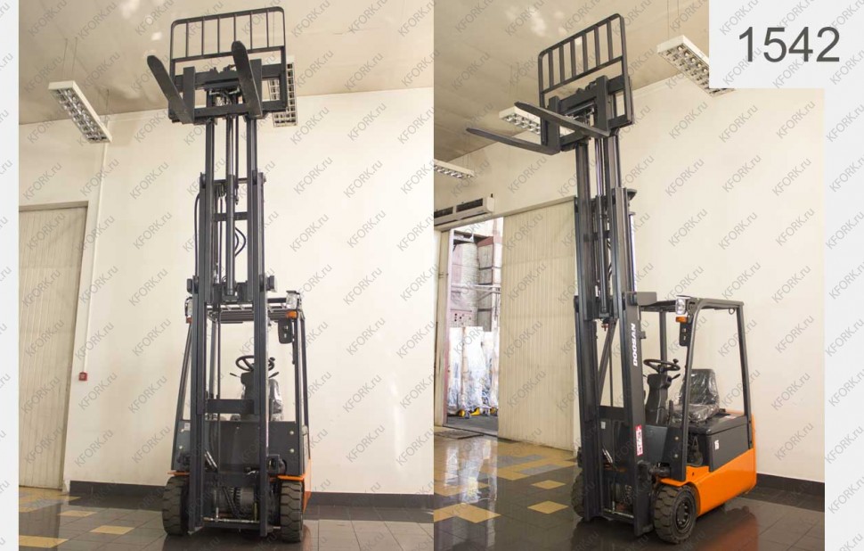 Электрический погрузчик Doosan Б/У с интентарным номером 1542 2013 года выпуска. Состояние - Хорошее. Имеет грузоподъемность 1500 кг. Гарантия: 3 мес или 500 м/час.