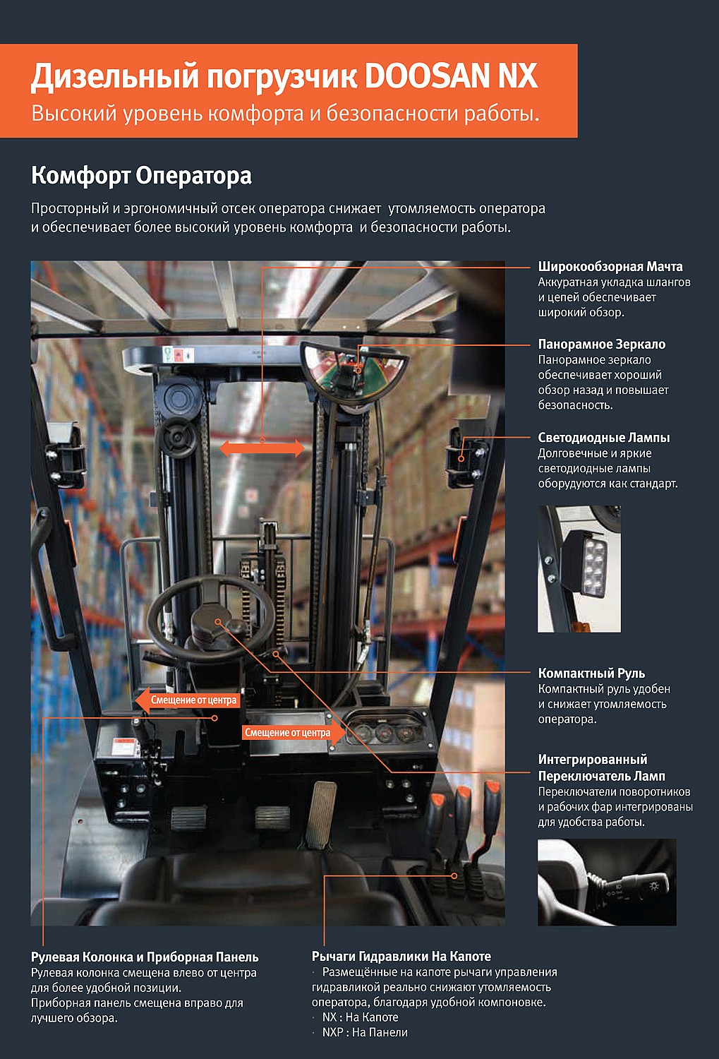 Автопогрузчик Doosan NX - высокий уровень комфорта и безопасности