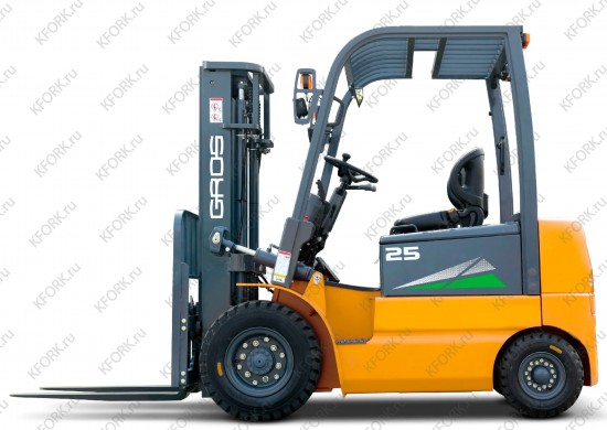 Электрический вилочный погрузчик GROS CPD25 4-х опроный грузоподъемностью 2500 кг; страна марки: Китай.